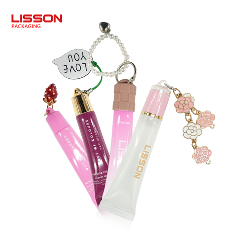 Fábrica personalizada luxo vazio Squeeze Lip Gloss tubo bonito cosmético plástico Lip Balm embalagem com chaveiro